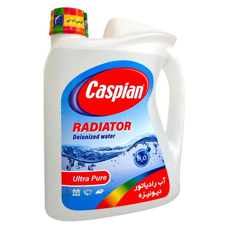 آب رادياتور كاسپين از آب ديونيزه ساخته شده و بهترين گزينه براى سرريز در رادياتور هاى حاوى مايع خنك كننده ، باترى ، مخزن شيشه شوى خودرو وانواع اتوهاى بخار است.
