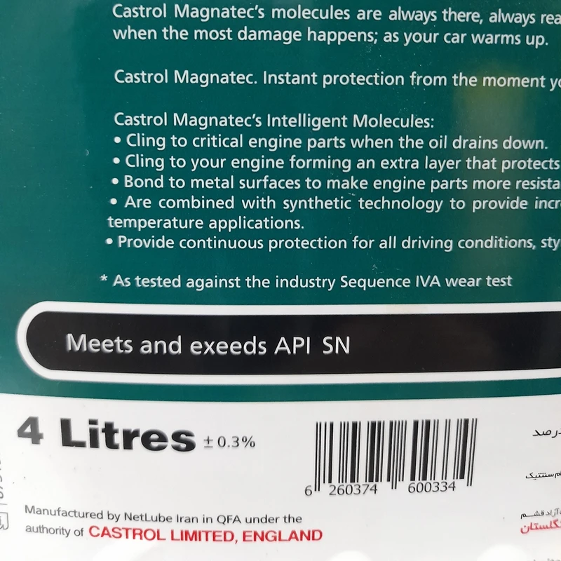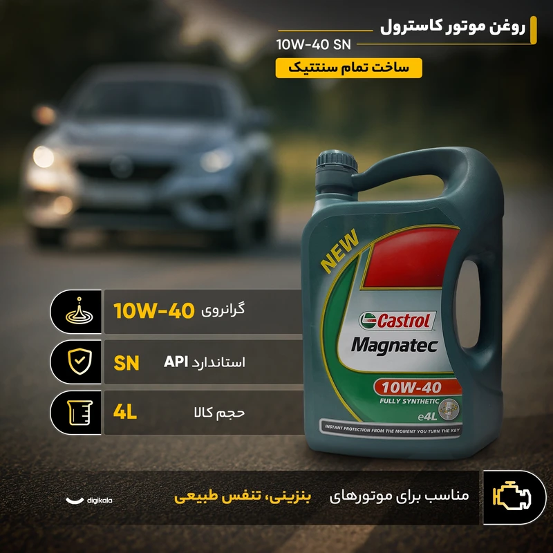 روغن موتور کاسترول مگناتک مدل 10w40 SN حجم 4 لیتر