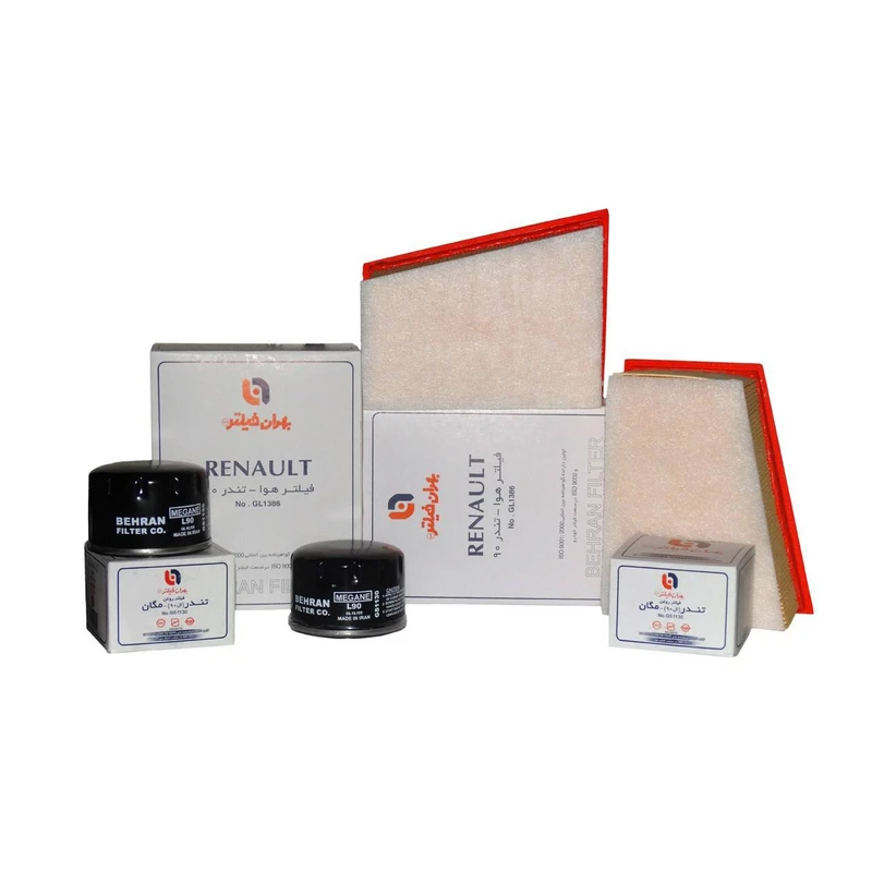 فیلتر هوا بهران فیلتر مدل GL1386/2 بسته 2 عددی به همراه فیلتر روغن خودرو مناسب برای رنو ال 90