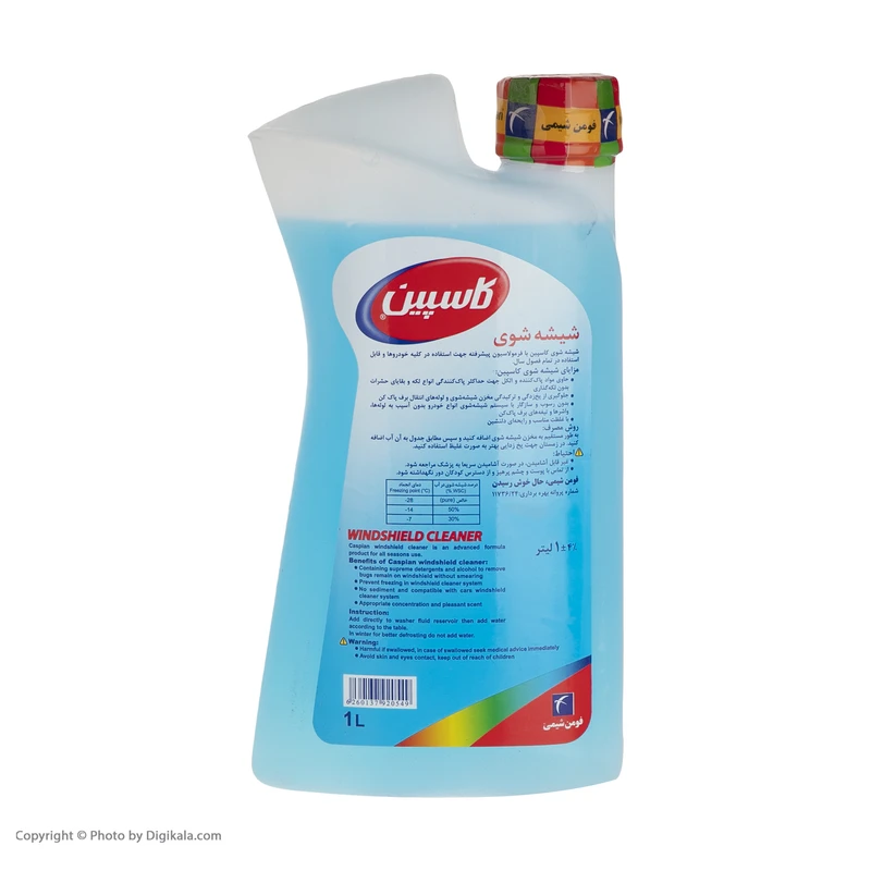 محصول فوق یکی از تولیدات شرکت شناخته شدهی «کاسپین» (Caspian) بوده که برای تمیز کردن شیشه مورد استفاده قرار میگیرد. این محصول به لطف ترکیبات ویژهای که دارد از قدرت تمیزکنندگی بالایی برخوردار بوده و بدون آسیب زدن به سطح شیشه میتواند آلودگیها را تمیز کند. استفاده از این محصول در تمام فصلهای سال امکانپذیر است. وجود الکل در این شیشه پاک کن موجب شده تا در دمای پایین زمستان همچنان حالت مایع خود را حفظ کرده و یخ نزند. در فصل تابستان نیز بهتر است آن را با 50 درصد آب ترکیب کنید تا دیرتر تبخیر شود. برای استفاده از این محلول باید آن را در مخزن شیشه پاککن خودرو بریزید تا با حرکت تیغههای برفپاککن، محلول روی شیشه پخش شود. استفاده از این شیشه پاککن موجب حرکت بهتر تیغه روی سطح شیشه خواهد شد. این محلول تمیزکننده حجمی برابر 1 لیتر دارد.